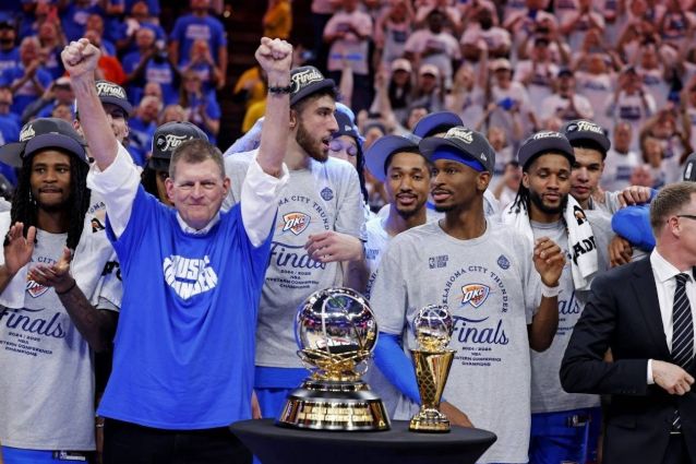 17年时间以来,这支球队用最小的市场打出最好的胜率之一,七次获得西北组冠军,打进12次季后赛,5次打进西决,两次打进总决赛,并最终在今年如愿以偿,捧起了搬迁到俄克拉荷马之后的第一座冠军奖杯。